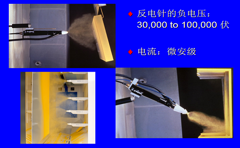 所謂粉末靜電噴涂就是利用高壓靜電電暈電場的原理。在噴槍頭部金屬導(dǎo)流標(biāo)上接上高壓負(fù)極,被噴涂工件接地形成正極,使噴槍和工件之間形成一個較強(qiáng)的靜電電場。
