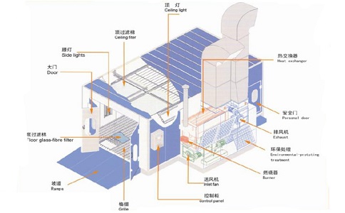 噴烤漆房最早起源于意大利,國內(nèi)從80年代開始引進(jìn)噴烤漆房的技術(shù)并投入生產(chǎn)?,F(xiàn)國內(nèi)噴烤漆房生產(chǎn)廠家主要分布于江蘇鹽城、廣東、山東等地區(qū)??酒岱康淖饔镁褪菍ぜ砻孢M(jìn)行噴漆、烘干處理。