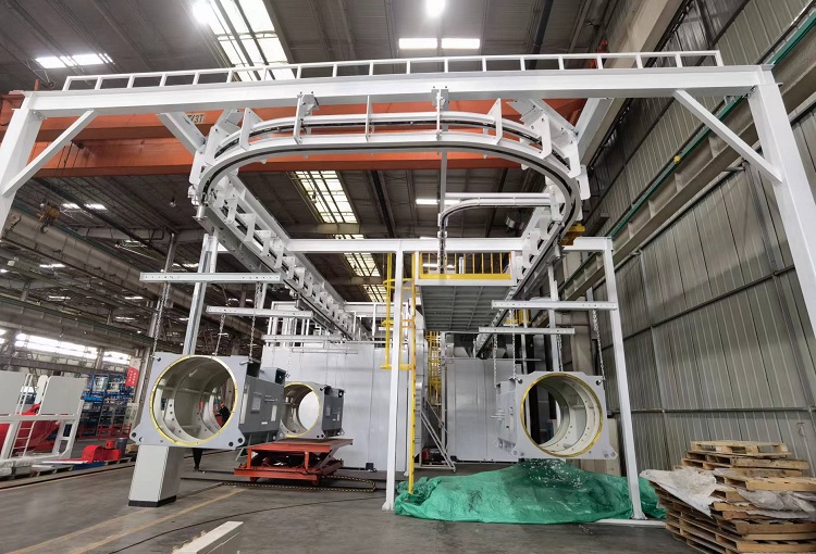 ?一般情況下,涂裝生產線由上線段、前處理工作段、屏蔽段、噴涂室、流平段、烘道、工件傳輸系統、送排風系統、廢氣凈化系統、安全滅火系統和計算機控制系統、下線段等部分組成。