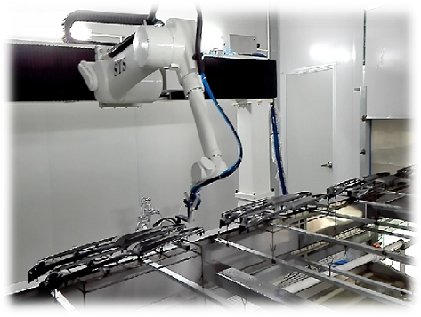 側壁6軸噴漆機器人適用于汽車、軌道車輛、客車、專用車、變壓器、風電、工程機械、機床、大型石化裝置、船舶等關鍵零部件和機械基礎件的噴漆/噴粉作業,側壁噴漆機器人往往成對布置,在工件的一側各布置一臺。