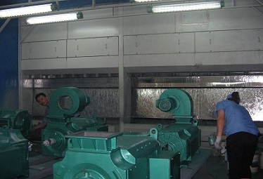 | 供漆室 送風系統綱結構平臺下方安裝一個5.5m×2m×3m(L×W×H)的供漆室。配有排氣扇,排氣量不小于10次/分,采用防爆型排氣扇和照明燈。供漆室內埋設地線,預防靜電引發火災;為便于噴漆作業,在噴漆室的兩側,每側設壓縮空氣快速接頭 |